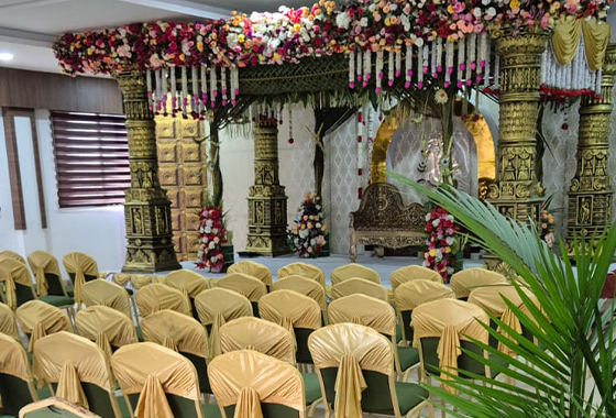 The Platinum Wedding Hall sets the stage for your dream wedding. Accommodating up to 600 guests, its splendid ambiance and spacious design create the perfect backdrop for the most cherished moments of your life. Whether it’s a wedding, a reception, or a grand celebration, the Platinum Hall guarantees elegance and perfection in every detail.